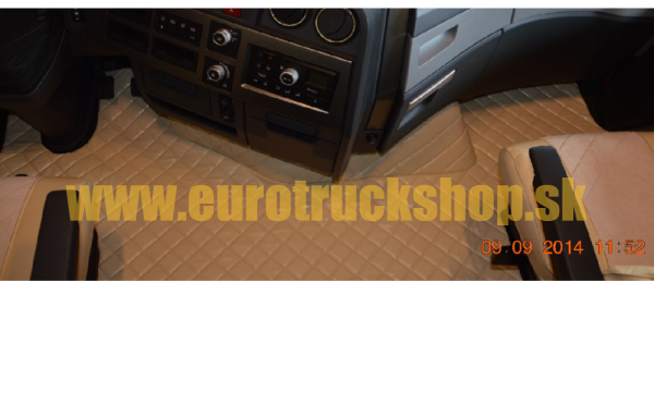 Kompletná sada kobercov pozostáva so stredového koberca + kobercov pod nohy,ktoré na seba navzájom presne naväzujú a v kabíne tvoria kompaktný celok. Koberce sú symetricky prešívané. Prešitie tvorí kosoštvorcový vzor, pričom každý dielik pripomína vankúšik, keďže náplň je z dvojitej peny a výstelky. Koberce sú vyrobené z vysoko kvalitnej EKO kože, obľúbeného materiálu pre svoje vlastnosti.